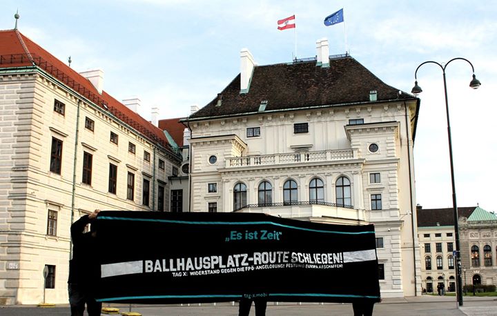 Am Tag X wird es vier verschiedene Sammelpunkte geben, von denen aus wir gemeinsam in Demonstrationszügen zum Ballhausplatz, dem Ort an dem die Regierung angelobt werden soll, ziehen werden. Wir wollen an diesem Tag unsere unterschiedlichen Inhalte auf die Straße tragen und dabei einen solidarischen und gemeinsamen Ausdruck schaffen! Die zukünftigen Regierungsmitglieder wollen vom Bundeskanzleramt zur Bundespräsidentschaftskanzlei gehen. Dort wollen wir mit vielfältigen und kreativen Aktionsformen einer großen, medialen Öffentlichkeit unseren Unmut gegenüber der künftigen Regierung zum Ausdruck bringen.