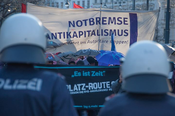 Am Tag X hat sich gezeigt, dass die neue Regierung mit Protest zu rechnen hat. Es ist deutlich geworden, dass das rechtsextreme und autoritär-konservative Regierungsprojekt nicht ohne Widerspruch umgesetzt werden kann. Viele tausend Menschen gingen in den frühen Morgenstunden des 18. Dezember gegen die Angelobung der FPÖVP-Regierung auf die Straße, an der Großdemonstration am Samstag den 13. Jänner werden es noch viele tausend mehr sein! Gleichzeitig trägt ein breiter gesellschaftlicher Konsens in Österreich menschenfeindliche Positionen und ermöglichte den Aufstieg der extremen Rechten. Als radikale Linke sollte man aber trotz eines solchen Klimas nicht die Hoffnung verlieren. Es geht darum, in die Offensive zu kommen. Um unseren Widerspruch mit den bestehenden Verhältnissen sichtbar zu machen, rufen wir zu einem eigenen Block auf der Großdemonstration gegen #schwarzblau auf.